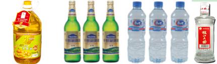 圓形、方形、橢圓形、專有瓶型的; PET瓶和玻璃瓶,如啤酒瓶和白酒瓶等。